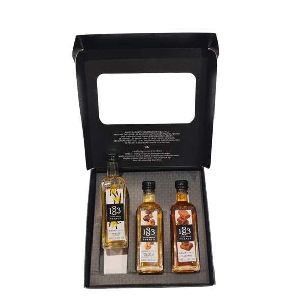 Deze mooie Routin 1883 Giftbox bestaat uit 3 flesjes Routin siroop met de volgende smaken: Vanille, Caramel en Roasted Hazelnut.